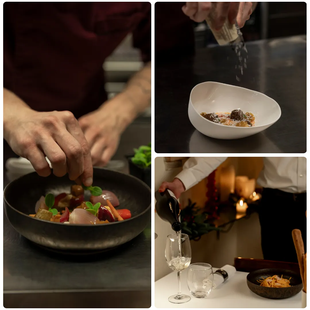 Dalla selezione di materie prime biologiche locali alla cura di una cantina che custodisce etichette tra le più rinomate al mondo.